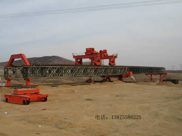 貝雷組裝式架橋機的導梁和橫梁主要由貝雷片組裝而成,具有結構簡單,適用性強,互換性好,運輸方便,用途多,經濟節約,容易組裝等特點。而且還具有可完全不附設橋下支梁、不受洪水威脅、架橋施工時不影響橋下通行和架設跨